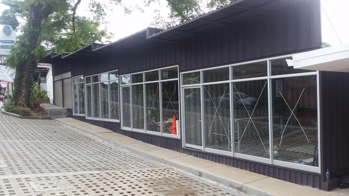 3,745 ft2, 6 commercial shops, 9 parking spaces, sidewalks, walkway, common areas, public roads improvments.